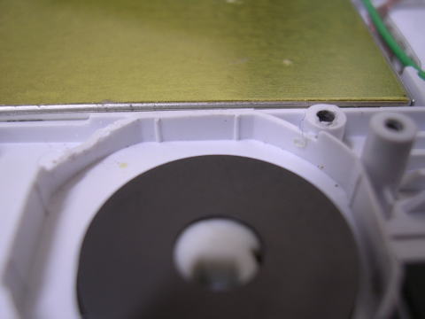 LL-SPA3フレキの逃げを作るために、スライドパットの壁をカッターナイフで削ります。