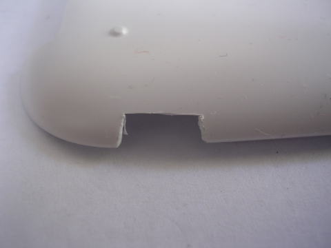 そして白いプラスチック板の付け根の部分をカッターナイフで5−6回切り込みを入れます。