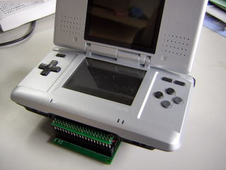 この状態でDSのSLOT2にGBAカートリッジ基板をしっかり差し込みます。