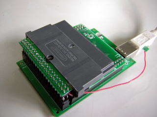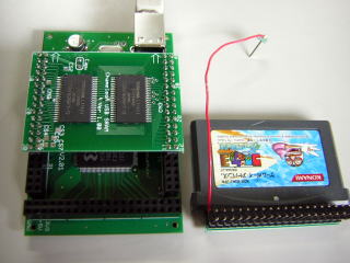 DS−RAMアダプタは任天堂DSのSLOT2(GBAコネクタ)に接続して、DSとPCの間でデータやプログラムを転送するためのハードウエアです。カメレオンUSBと組み合わせて、カメレオンUSBのアドオン基板として動作します。