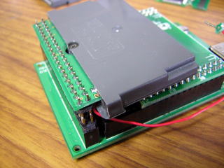 このままの状態では、DSを接続したときにDSの裏面とピンヘッダの半田付けした部分が当たり、DSに傷がつきますので、ピンヘッダの部分にゴムシートを取り付けます。(オプション)