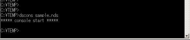 Windowsでコマンドプロンプト(DOS窓)を開き、「dscons sample.nds」を起動します。