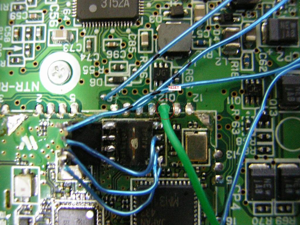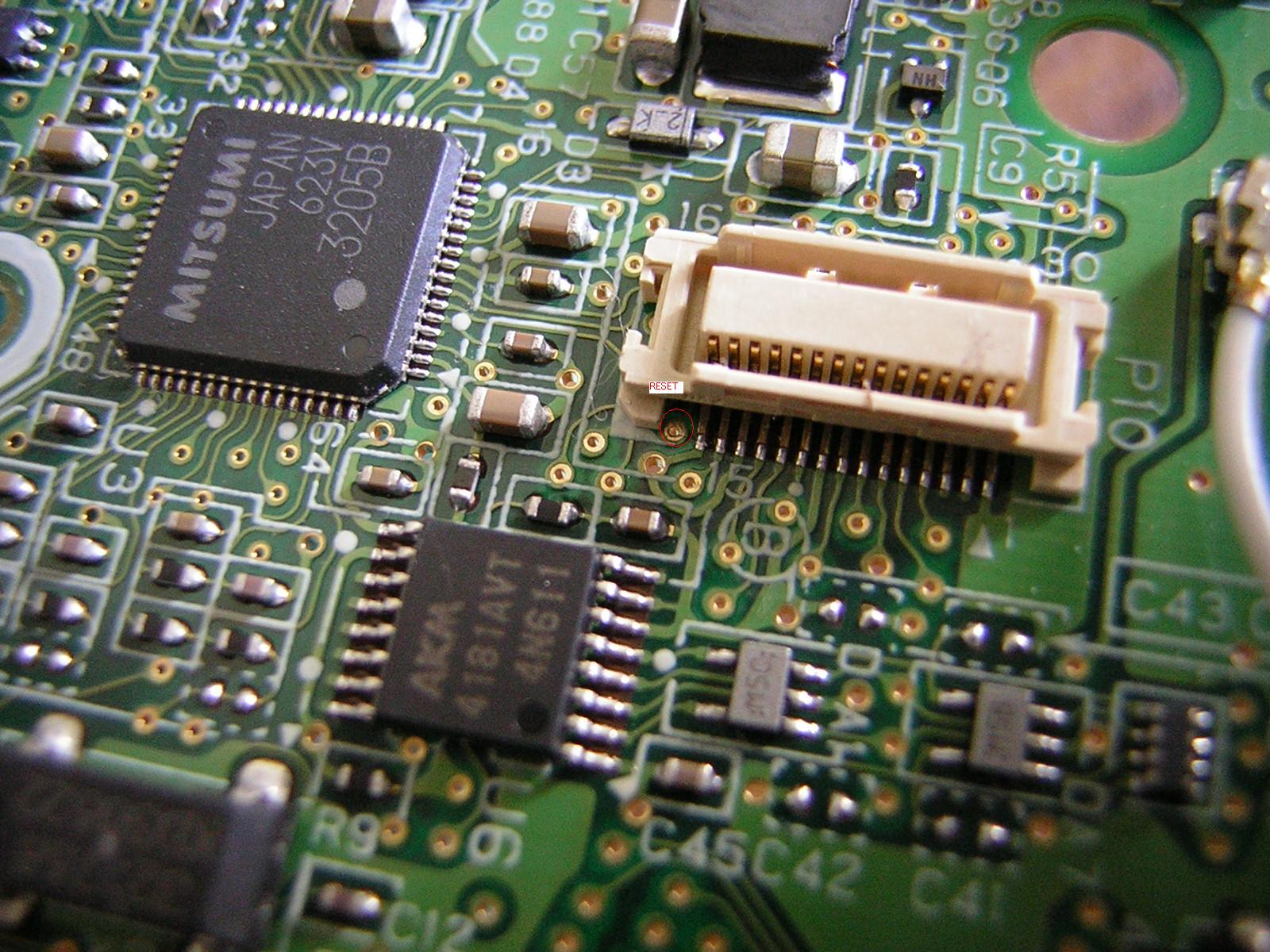 初期型DSの場合は写真の緑のワイヤの位置がリセット信号になります。