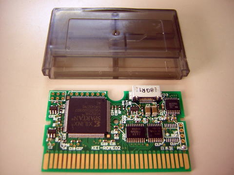 DS/LiteのSlot2コネクタ(GBA)に挿入して使用します。XILINX社のSpartan3E(XC3S250E)を搭載しており、DS/Lite側からコンフィグレーションを行うことが出来ます。