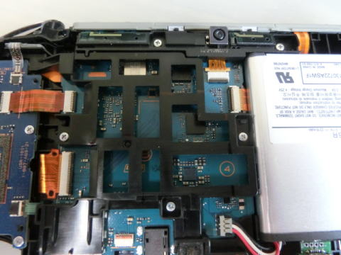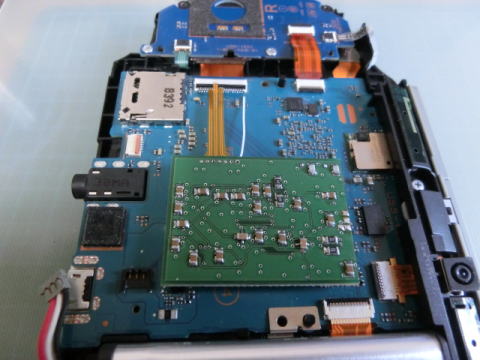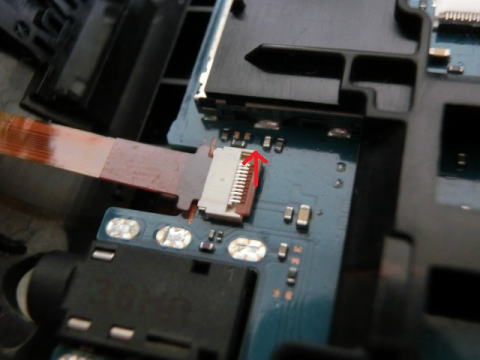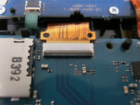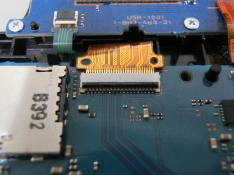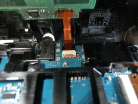 背面タッチパネルのフレキが裏ブタからメイン基板に接続されていますので注意してフレキを外します。