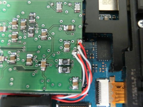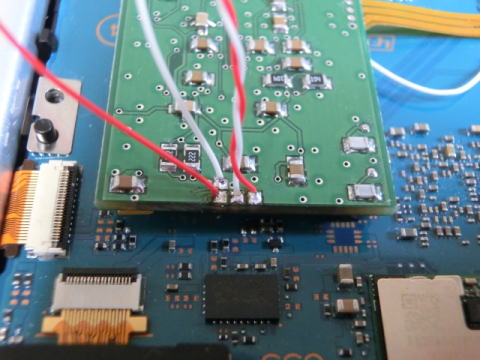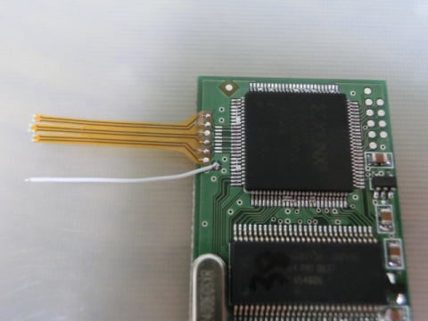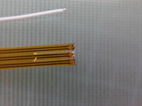 PSV基板上に3組の作動信号が視認できますので、その部分にPSV-SPA3のフレキを半田付けします。