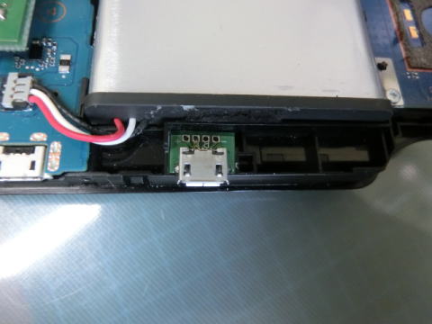 USBコネクタ基板はバッテリーと筐体の隙間部分に嵌め込みます。