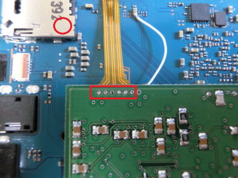 PSV-SPA3基板の信号ポイントと、PSV本体のGND(メモリカードコネクタのシャーシ部分)の間の抵抗値を測ることで正しく半田付けされていることを確認します。