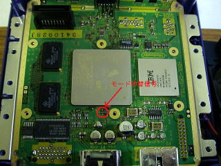 海外と国内のモード切替をコントロールするのがPIC(12C509A)です。このPICは内部にマイコンが内蔵されていて、電源立ち上げ時のリセットボタンの状態をみてどちらのモードにするかプログラムされています。PICはコントローラ基板に実装します。