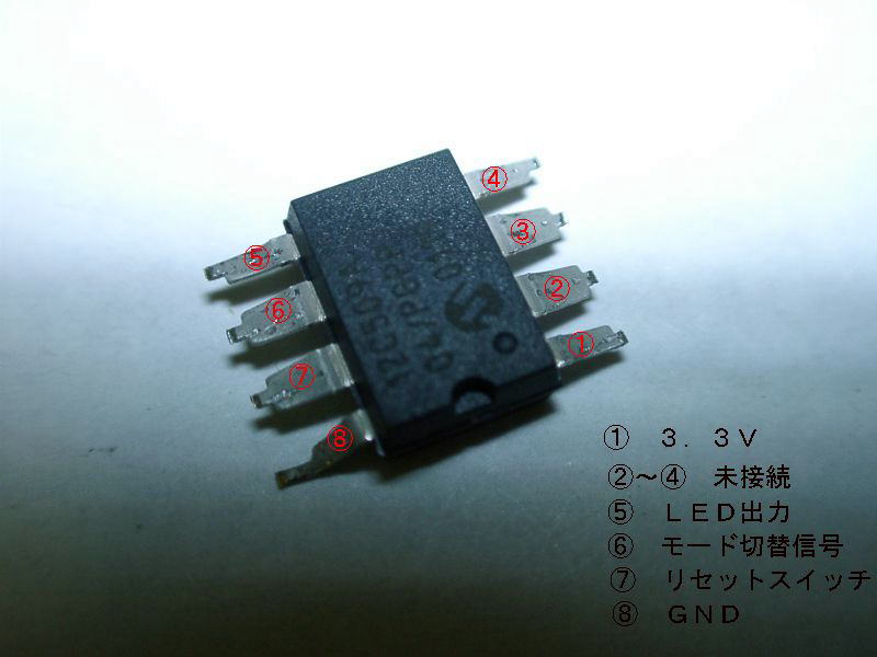 海外モードのときLEDを点滅させたくない人は、PICの5番ピンは接続しなくても結構です。