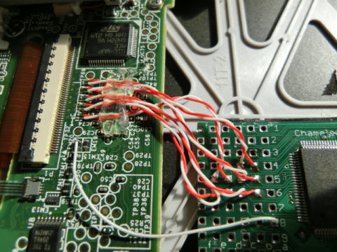 そしてカメSPA3のUSBコネクタをヒートガンで取り外し、USB信号を配線します)