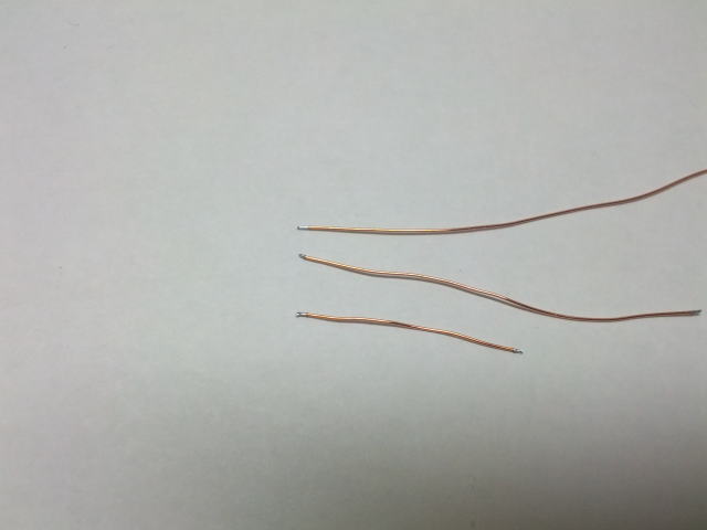 付属のUEW線を7cm、4cm、2cmにカットします。