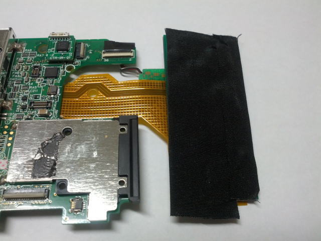 (SDカードのコネクタ取り付け位置を、カメSPAのフレキとスライドパッドが覆ってしまうため)