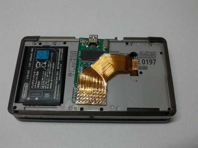 3DSのバッテリは、バッテリー端子に押し付けた状態でセロテープなどで固定します。