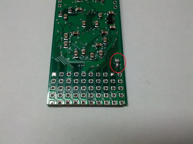 半田を流しすぎると、裏面に溢れてブリッジする可能性がありますので、チェックしておきます。
