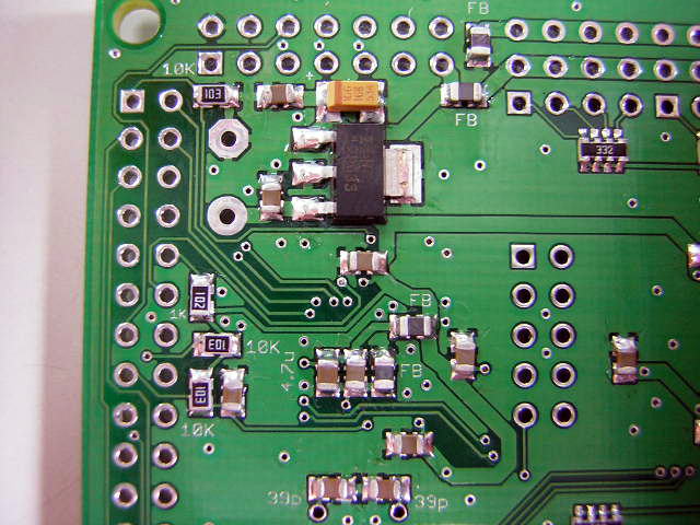 タンタルコンデンサ(写真の黄色い部品)は極性(向き)がありますので、取り付けには注意してください。