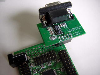 LPC2138のUART(RxD0、TxD0)信号は3.3Vレベルになりますので、PCのシリアルポートと直結することは出来ませんので、RS232Cレベルコンバータを使用してPCと接続します。
