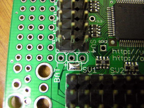 ユニバーサルエリアがありますので、バッテリー用のコネクタや、簡単なセンサー(加速度センサーなど)であれば実装することが出来ます。