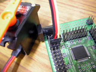 サーボの接続は写真のように、基板の外側にGND(黒/茶)の信号がくるようにします。
