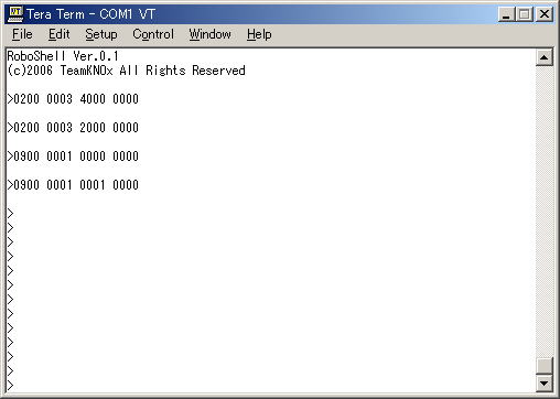 このページからダウンロード出来る動作確認用のRoboShellもTeamKNOxさんに作成して頂いたものに変更しましたので、全てのRevのLPC2138で動作するようになっています。