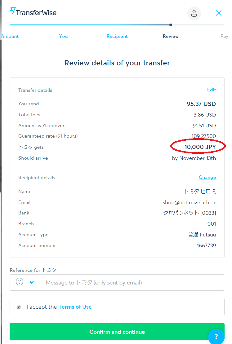 Please use the Wise service with a low fee for the bank transfer.