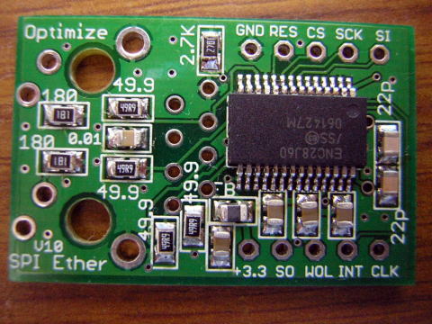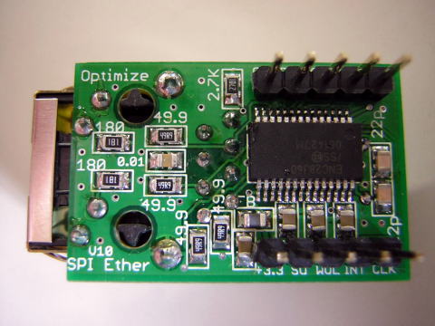 MICROCHIP社からENC28J60という、SPI接続のイーサネットコントローラ(MAC+PHY)が発売されました。10BASET-Tですので、速度は早くありませんが、SPIインターフェイスでマイコンと接続できるのが特徴です。